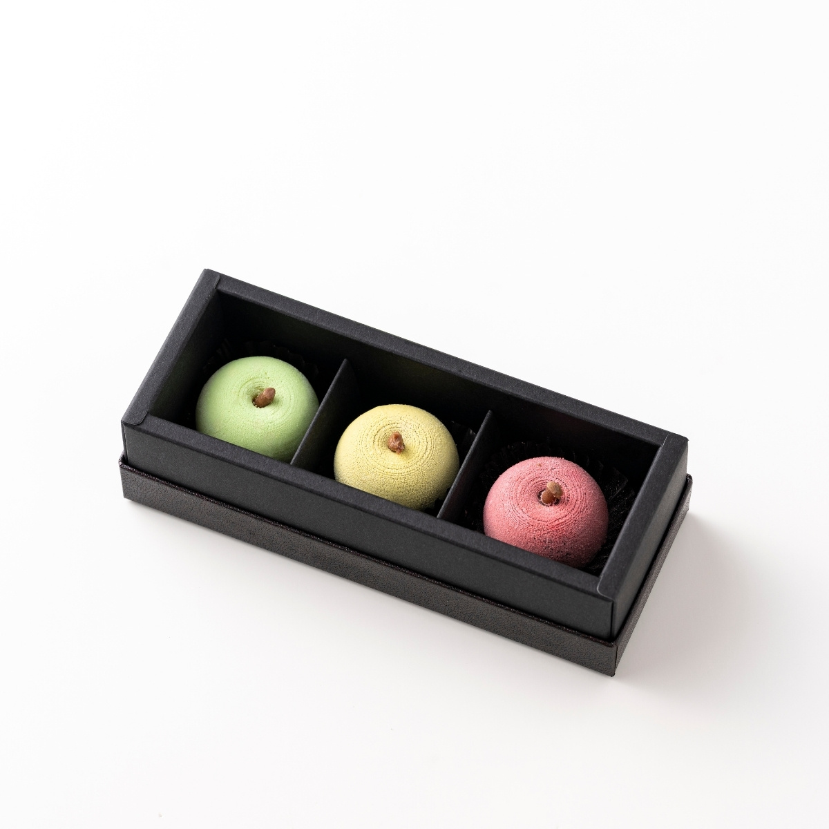 直径約3cmのかわいらしいりんご形の生チョコレートを3種のフレーバーでお届け。