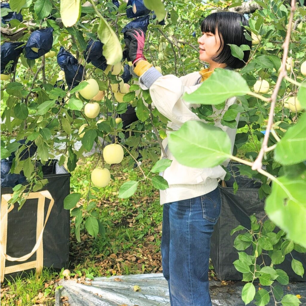 - もぎ取りの技術: 桜庭さんから「りんごを落とさず、ツルが付いたままきれいに取る」ための丁寧なコツを教わりました。りんごを落としてしまうと商品として扱えなくなるというお話に、改めて一つひとつのりんごが持つ価値を痛感しながら、慎重に作業を進めました。